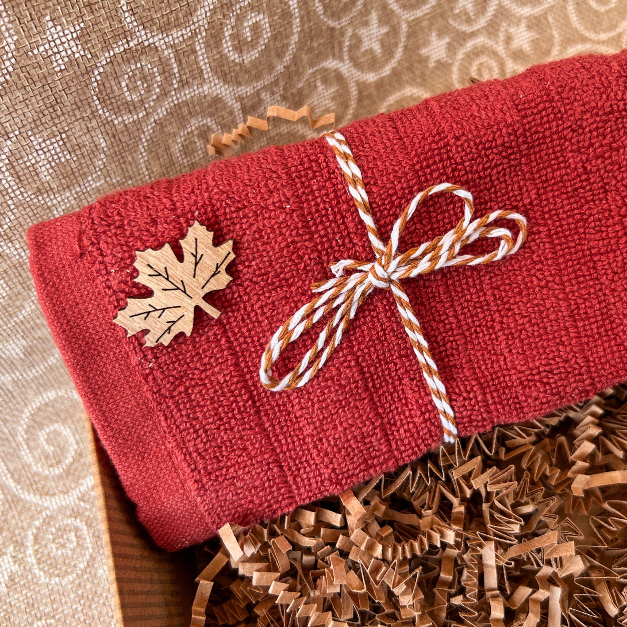 Packed in a kraft box with raffia paper, ribbon, and a Canada-themed sticker.